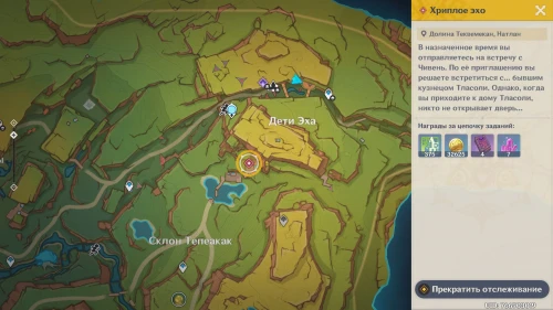 В Genshin Impact Хриплое эхо является частью квестовой цепочки «Молитва о благословении на горном хребте», в рамках которой вам предстоит навести Тласоли, а затем отыскать подсказки, связанные с ней, и найти Йенгу. Если у вас появились сложности с получением и прохождением задания, то изучите наше руководство.