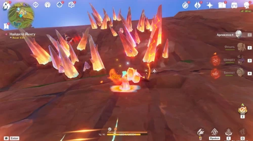 Телепортируйтесь к статуе Пиро Архонта, расположенной возле поселения, а затем спрыгните с обрыва и спланируйте на юг, двигаясь вдоль скалы с правой стороны. Приземлившись, начните идти на восток. Вскоре вы увидите у подножья горы хижину, на которую указывает маркер, – подойдите к ней.