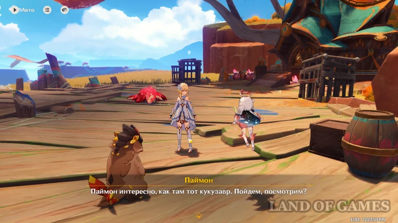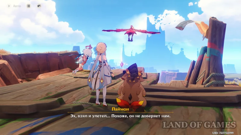 В Genshin Impact «Тяжелые крылья» продолжают крупную цепочку миссий «По следам избранника драконов» и являются скрытым мировым квестом Натлана. На плоскогорье к северо-западу от Храма предков мы находим стоянку торговцев, промышляющих отловом заврианов. В последствии нам придется помочь раненому кукузавру оправиться от травм и встать на ноги.
