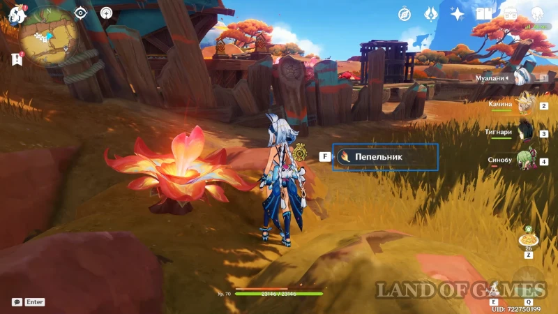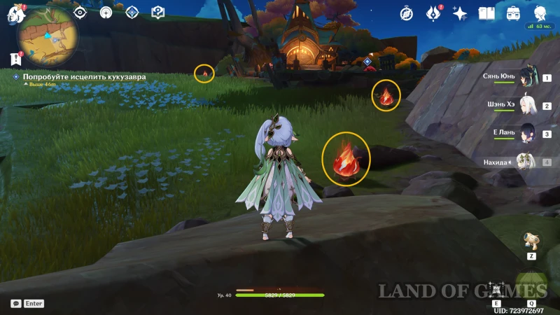 Далее нужно собрать три тычинки пепельника: к двум из них уже подходил наш дракончик, а третья растет около забора на краю лагеря (выше есть карта и места со всеми бутонами). Чтобы собрать материал, атакуйте закрытый цветок любой гидро атакой.