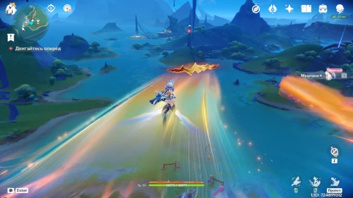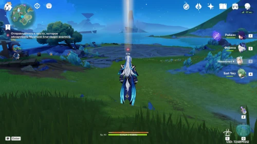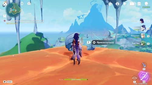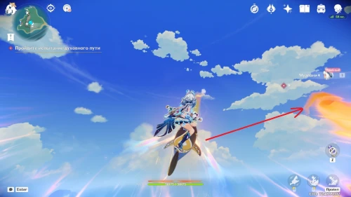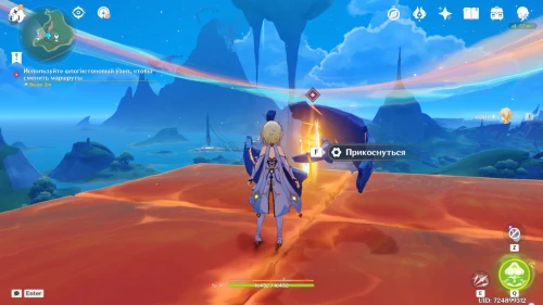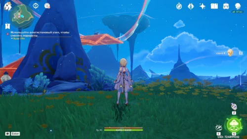 От первого узла летите на юго-запад. Одолейте пару хиличурлов и прикоснитесь ко второму узлу.