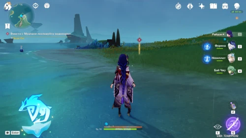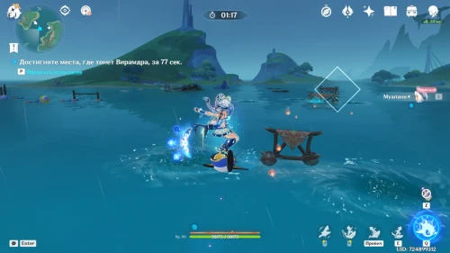 Вам предстоит за полторы минуты доплыть до ученого. Активируйте Е-шку Муалани и следуйте за семенами флогистона, перепрыгивая через преграды и обходя водовороты.
