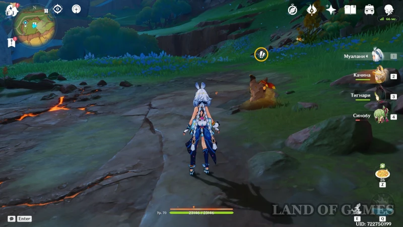 Чтобы наткнуться на активность, переместитесь к данжу «Древний дозорный пункт», а затем поднимитесь по скале за ним. Пройдя немного вперед, вы увидите землистую поляну с трещинами лавы, которая привлечет внимание дракончика.