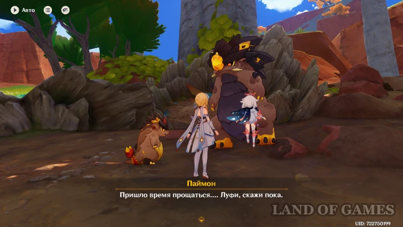 Перед тем, как покинуть стаю, Паймон предлагает маленькому завриану попрощаться с большим тепетлизавром, сидящим перед гнездом в центре разломанного ствола. Подходим к крупной особи и, начав диалог, напоследок наблюдаем сцену прощания — после этого квест будет окончен. Наградой за прохождение будет 20 примогемов, 150 баллов опыта приключений и 25 тысяч моры.