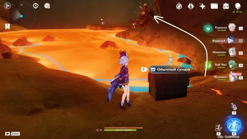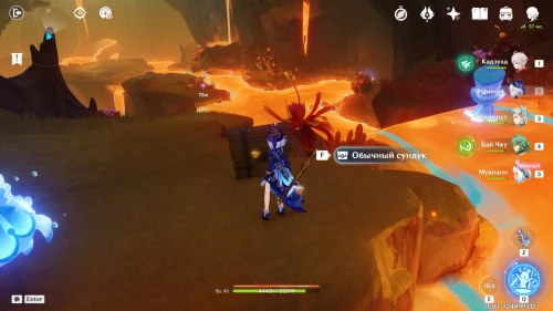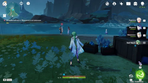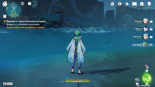 Сразу предупредим, что после этого этапа задания вы попадете в сюжетное подземелье, где не сможете поменять отряд. Советуем составить команду преимущественно из Гидро героев и, наоборот, отказаться от Пиро персонажей — вам предстоят сражения с элементальными сущностями, поэтому водная стихия будет наиболее эффективна. Кроме того, заранее запаситесь целебной едой, так как в одном из испытаний вы можете потерять много ХП.