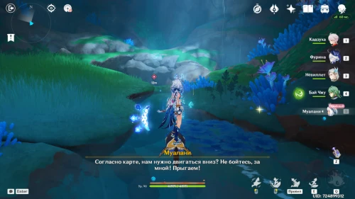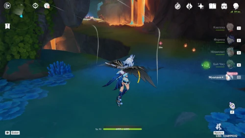 В ваш отряд войдет пробная Муалани. Идите вперед по пещере. Для удобного передвижения по воде используйте элементальный навык Муалани.