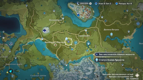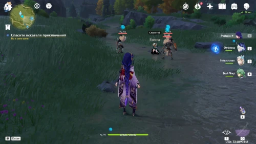 Телепортируйтесь к статуе Архонтов у винокурни «Рассвет». На тропинке рядом со статуей вы увидите, что на девушку напали хиличурлы. Победите две волны врагов.