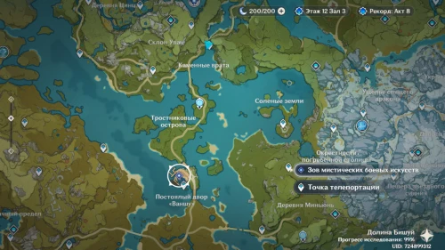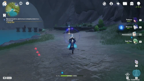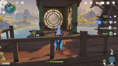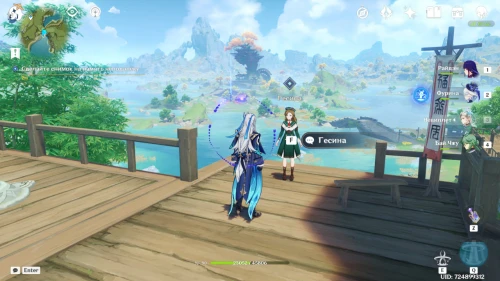Идите на юг и поднимитесь на лифте — либо сразу телепортируйтесь в нужное место и спуститесь на один этаж. Пообедайте с Гесиной и попрощайтесь: девушка остановится здесь еще на пару дней, а затем направится к гавани Ли Юэ.