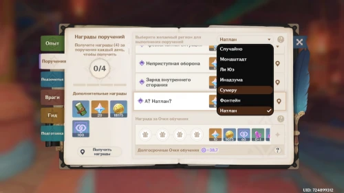 Затем, чтобы задание выпало с большей вероятностью, откройте Лицензию искателя приключений и в соответствующем разделе выберите Натлан. Теперь остается лишь ждать, пока в один день поручение не появится в вашем журнале.