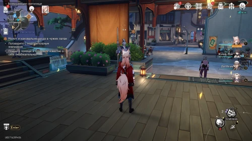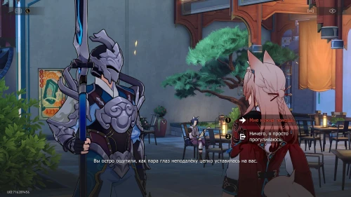 Подойдите к лису возле пространственного якоря «Двор спокойствия» и пообщайтесь с ним. Выбирая белые реплики, вы просто завершите диалог. При этом вы сможете снова вступать в беседу с персонажем и пробовать выбирать другие варианты.