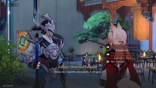 Появятся две новые красные реплики. Можете выбрать любую из них, так как Цзяоцю все равно расскажет рыцарю о наличии борисинцев, маскирующихся под обычных людей. Тот скажет, что сообщит об этом стражникам, а потом тоже исчезнет.