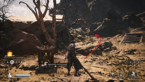 Еще один горшок с Камнем отрезвления, будет находиться недалеко от с алтаря Мост предела ветров в локации Дом желтого ветра. Перейдите мост, сразу поверните налево, а затем сверните вправо. Убейте врагов и слева, рядом с мертвым рогатым яогуаем вы сможете забрать нужный предмет.