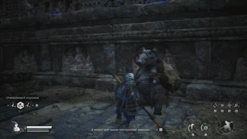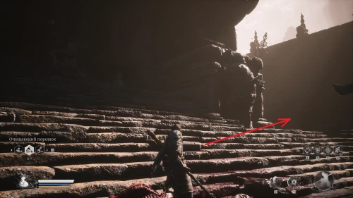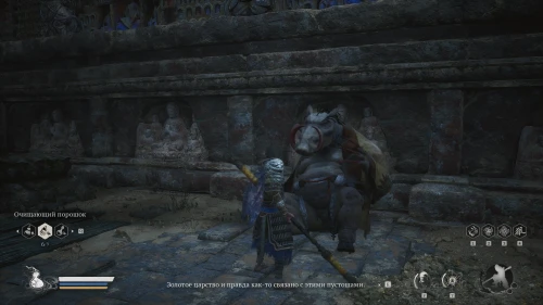 В этот раз вы застанете кабана справа, перед входом в огромные закрытые двери. Он удивится тому, что у вас находится золотой знак его брата и тотчас нападет, теперь уже под именем Служитель в желтых одеждах.