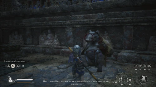 После победы над ним, Служитель похвалит вас за отличный бой и откроет вход в пропавшее золотое царство. Следуйте за ним и обязательно выслушайте его историю об огромном жуке и гуай-крысе.