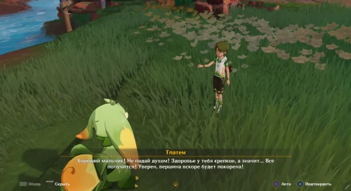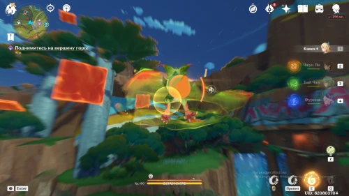 Наша задача — показать маленькому завриану, как надо взбираться по горам, поэтому мы должны перевоплотиться в юмказавра и, используя печати свернутой травы, как можно быстрее добраться до вершины горы, избегая возникающие на пути препятствия. Это нужно делать как можно быстрее, чтобы получить секретное достижение «Победа опадающей листвы», дающее 5 примогемов, но в задании нет никакого таймера, который бы давал четкие временные рамки, поэтому во время испытания лучше напрячь всю силу и ловкость.