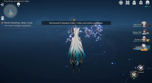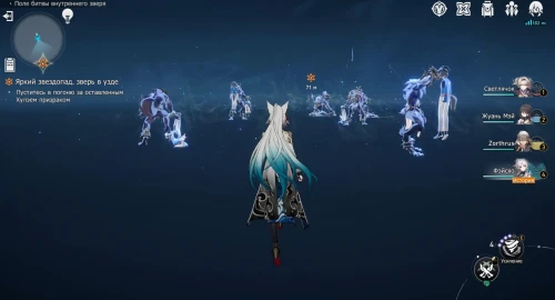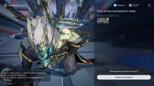 Подойдите к монстру и пообщайтесь с ним. Затем уведите его для начала разведки местности «Поле битвы внутреннего зверя. В ней вам предстоит сразиться с еще одним боссом, так что советуем взять физических, огненных и/или квантовых дамагеров. Подойдут также бойцы, способные пробивать любые уязвимости.