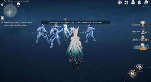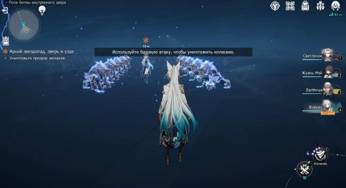 Вы окажитесь внутри разума Фэйсяо. Двигайтесь вперед к квестовому маркеру, уничтожая по пути иллюзии при желании. Послушайте Хулэя, а затем разрушьте призрак подозрения базовой атакой (ЛКМ). Двигайтесь к следующему указателю и развейте призрак страха. В конце вам предстоит рассеять призрак желания.
