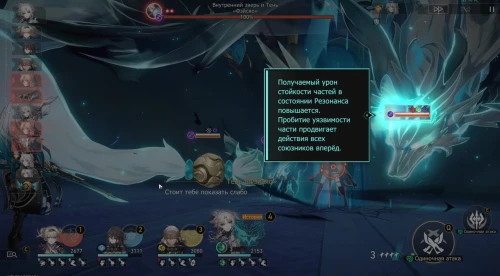 По этой причине, если вы видите, что Тень Фэйсяо вошла в резонанс с какой-либо частью тела зверя, то постарайтесь поскорее пробить ее стойкость, чтобы убрать бафф и продвинуть действие своих персонажей. Отметим, что урон, наносимый частям тела, снижает общую шкалу босса.