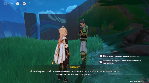 Тламот говорит, что ему нужно поймать Похитителей сокровищ и успокоить юмказаврика, после чего нам необходимо будет сделать выбор между этими двумя действиями.
