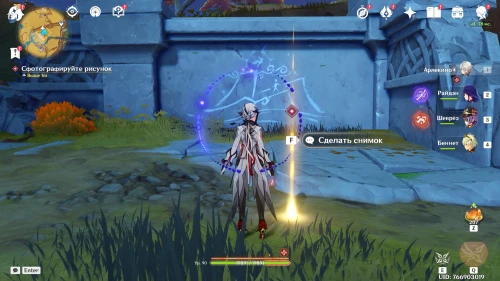 Теперь вам нужно будет сделать фото найденного изображения. Для этого встаньте в место, отмеченное указателем, и нажмите клавишу «F». Затем наведите объектив на стену с рисунком и сделайте снимок. Возвратитесь к Тьяго, который будет ждать вас за деревянным мостиком. Послушайте о проблеме Понче.