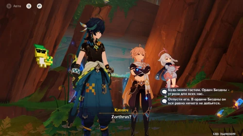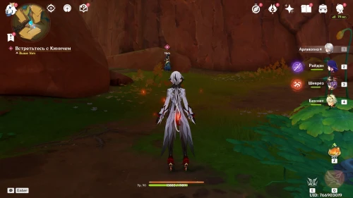 Далее посмотрите пару роликов. К вам подойдет Кинич, который захочет поболтать с вами наедине. Пройдите к квестовому маркеру чуть южнее вашего текущего местоположения и гляньте новую кат-сцену. Затем прокрутите время на следующий день (08:00-12:00) с помощью меню Паймон.