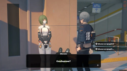 Поболтайте с девушкой. Она попросит вас отыскать Эбигейл, которая будет ждать вас возле входа в метро на другой стороне улицы. Рядом с ней стоит банбу. Телепортируйтесь к местному инспектору Мяучело, а затем повернитесь, и вы увидите нужную вам барышню в маске и с зелеными волосами.