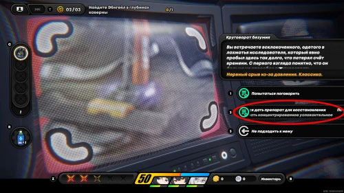 Перейдя в новую зону, пройдите в ее центр и встаньте на клетку с Джеффом, а затем используйте на нем концентрированное успокоительное, выбрав второй вариант ответа. В результате вы спасете его и разблокируете трофей «Проснись и пой! Работа ждет!». Плюс, он оставит после себя фиолетовый чемоданчик.