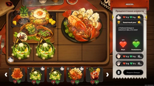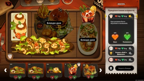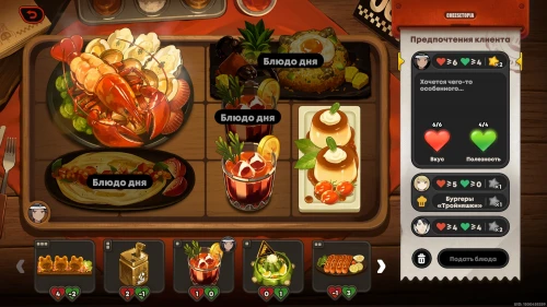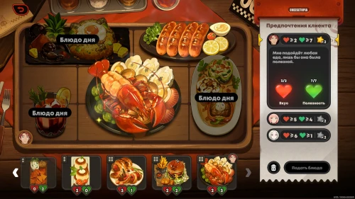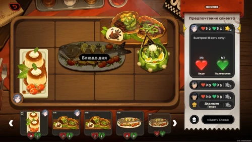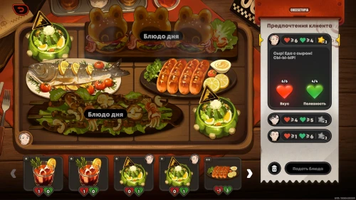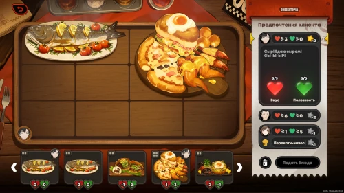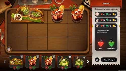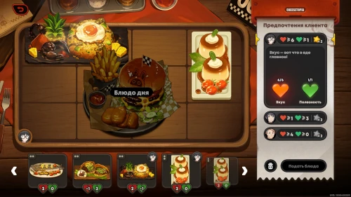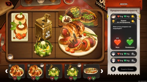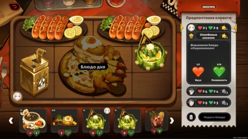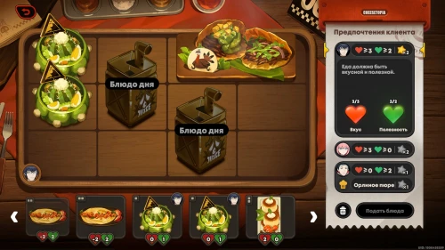 Можете сразу же взяться за новую фазу испытания. На этот раз вам придется иметь дело с блюдом дня, которое невозможно убрать с сервировочного стола, поэтому вам предстоит учитывать его при подборе блюд.