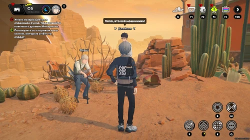 Спуститесь на подъемнике на нижний уровень города, а затем поговорите с девушкой по имени Мишель. Она расскажет вам, что создала универсальный переводчик, позволяющий понять речь животных, и предложит протестировать его. Далее вам предстоит послушать Трещащую ящерицу, Сурикатов и Черепаху. Затем возвратитесь к изобретательнице и снова пообщайтесь с ней для завершения квеста.