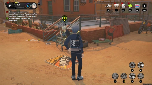 Пройдите в ресторан и найдите за одним из столиков Баффи – пообщайтесь с ней. Она попросит вас сделать снимок ящерицы. Выйдите из заведения, пройдите к краю обрыва напротив «Сырополиса» и нажмите кнопку «R». Затем наведите камеру на красную рептилию и сделайте фото. Теперь вернитесь к девушке и передайте ей снимок. На этом миссия подойдет к концу.