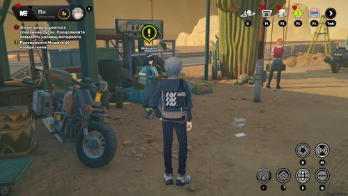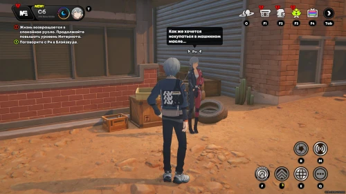 Поболтайте с девушкой по имени Ри, которая будет ждать вас возле старых покрышек, напротив ресторана. Согласитесь спросить у Дориана, почему он не дает ей машинное масло. Вы отыщите паренька в переулке.