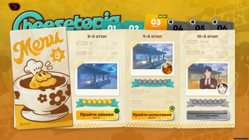 Вы также разблокируете достижения «Шесть звезд из пяти!» и «Сила сыра». В конце завершите пир вместе с Цезарь. Затем у вас откроется ачивка «Добро пожаловать в Сырополис».