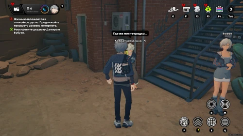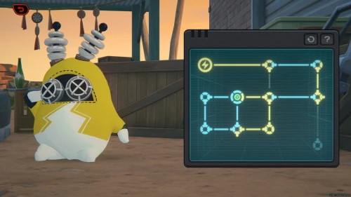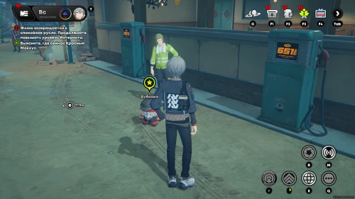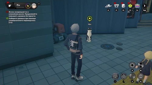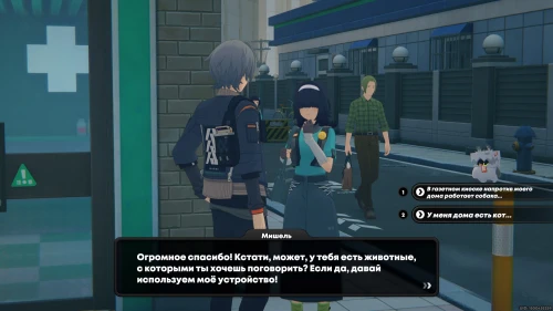 Вам нужно будет отправиться на Площадь Люмины к инспектору Мяучело. Возле маскота вы обнаружите Мишель – заговорите с ней. Она снова попросит вас протестировать ее универсальный переводчик. Развернитесь и перейдите на другую сторону дороги, а затем поверните направо в переулок и послушайте Его котейшество.