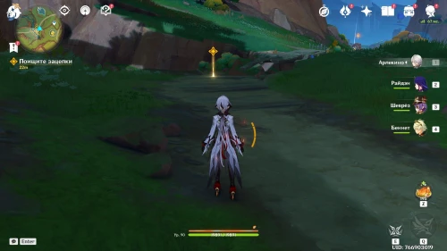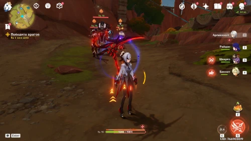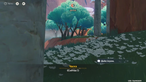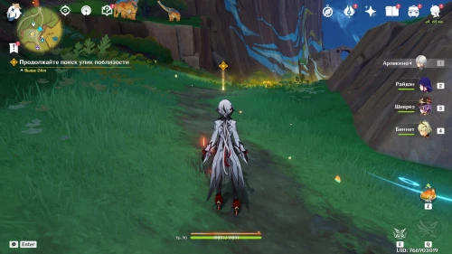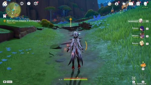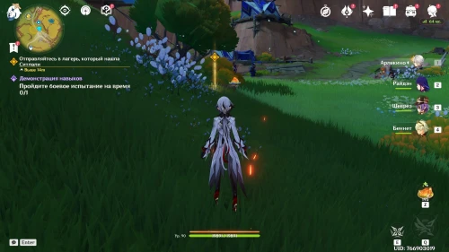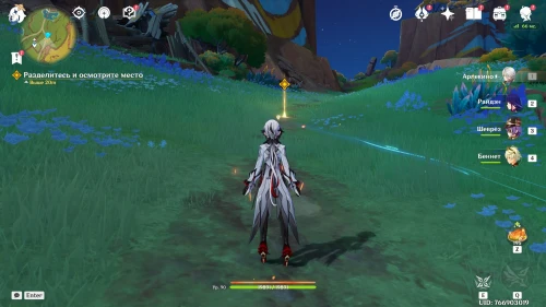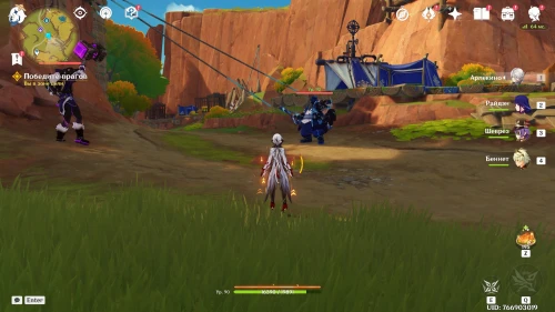 Вернувшись из Царства ночи, продолжайте двигаться в южном направлении, где Ситлали нашла лагерь Фатуи. Встаньте возле деревца и спрячьтесь за кустами. Далее вам предстоит разобраться с двумя группами застрельщиков Фатуи по 3 бойца. Советуем взять хорошо прокаченный отряд, чтобы быстро победить всех противников.