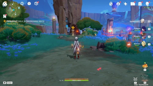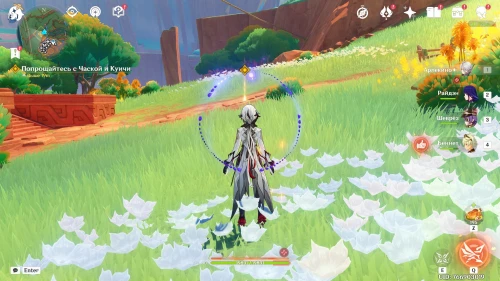 Затем телепортируйтесь в поселение Детей Эха возле входа в Натлан и идите к дому Шилонен, расположенному в верхней части деревни. Затем поболтайте с ней и узнайте, что делать дальше. Теперь переместитесь к статуе Пиро Архонта в указанном племени, чтобы встретиться с Киничем. Он поведает вам об Оророне и Капитане.