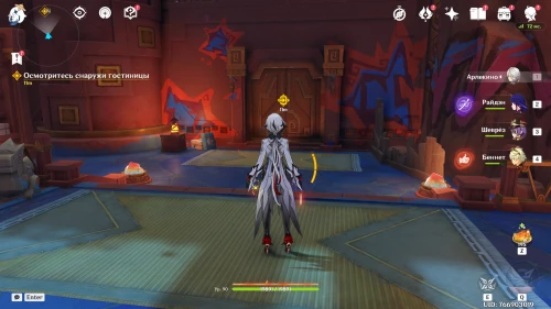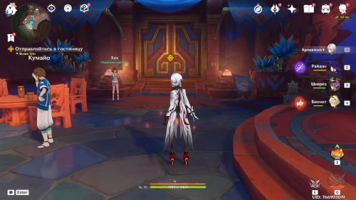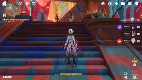 Уничтожив врата и посмотрев ролик, возвратитесь к входу в племя Детей Эха. Снова побеседуйте с Качиной, Муалани и Шелонен. Затем возвратитесь в Палату советников на стадионе и поболтайте с Пиро Архонтом.