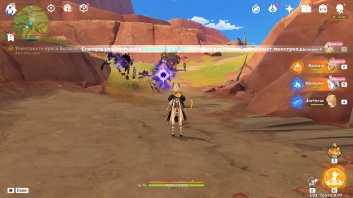 Данной командой вам предстоит уничтожить Врата Бездны. Отметим, что убивать врагов необязательно, то есть вы можете направить все свои атаки на фиолетовый портал. Сначала необходимо будет сломать его щит, используя элементальные удары, а уже потом разрушить сами врата.