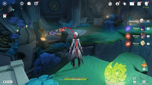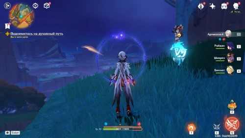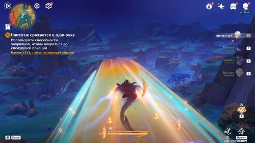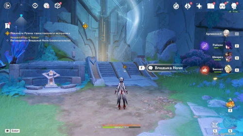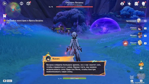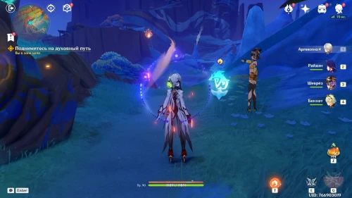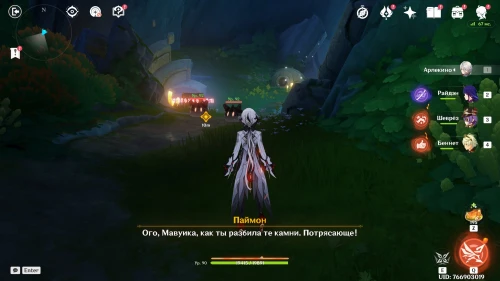 После диалога вы можете пообщаться с Владыкой Ночи (необязательно), чтобы задать ей несколько вопросов о Бездне, силе небес и других подобных вещах. Затем выйдите из пещеры, дотронувшись до барьера. На этом задание подойдет к концу. В качестве вознаграждения вы получите 875 очков приключений, 38 тысяч моры, 4 книги героя и 7 единиц волшебной руды усиления.