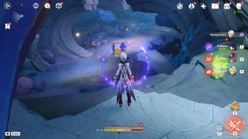 В первой волне драться предстоит с хиличурлами и призрачным изгоем-хиличурлом. Напоминаем, что для уничтожения фантомных врагов необходимо сначала сбить их барьер, используя стихийные атаки. Далее появятся гончие Разрыва, способные накладывать Разложение.