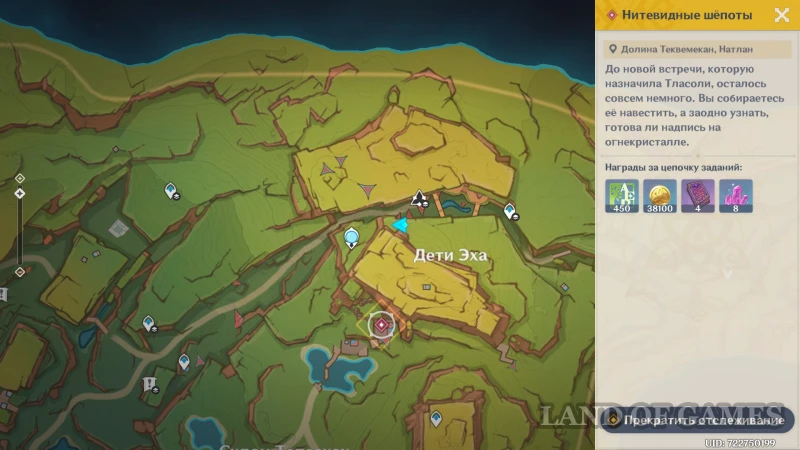 Далее отправляйтесь к дому Тласоли, расположенному к югу от ущелья Детей Эха. Женщина стоит у входа и не против принять долгожданных гостей.
