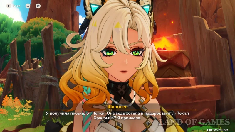 Оставшись наедине, Шилонен подробнее рассказывает о своем подарке для Нечки. Девочка лично попросила первое издание сказки «Текила Храброго» — это редкая рукопись, которой в свое время переписали концовку, сняв с продажи все старые копии. Так как у Шилонен есть пара экземпляров, один из них девушка оставляет нам, а со второй можно отправиться к дому Тласоли.