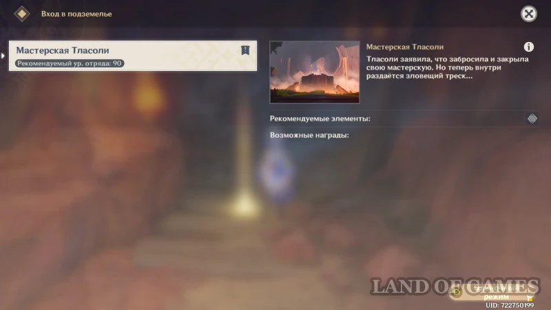 Для исследования данжа рекомендуется взять в отряд героя с гео элементом, однако вы можете выбрать любую пачку — на время исследования к команде присоединится пробная Шилонен. Попав в мастерскую, герои обнаружат вполне функционирующий комплекс, а это значит, что Тласоли давно обманывала соплеменников и вынашивала какой-то план. Разберитесь с кучкой сомнительных людей, охраняющих богатый сундук перед входом и продолжите исследование.