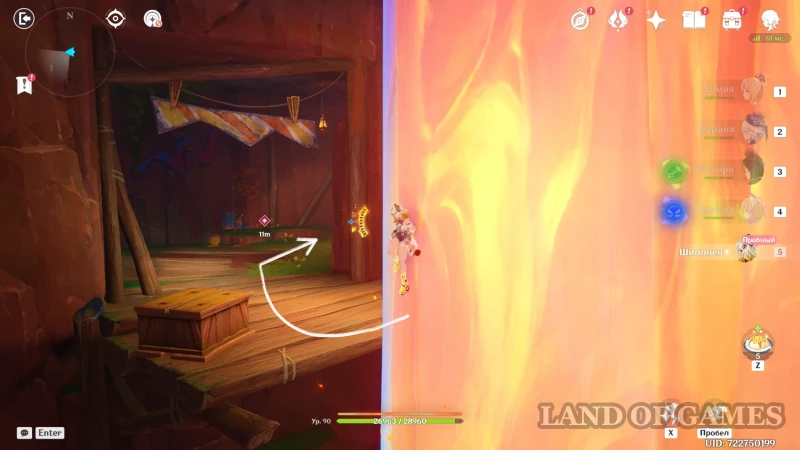 Двигайтесь в верхнюю часть подземелья, а когда достигните деревянного помоста перед свисающим кристаллом, снова используйте Е-шку Шилонен и катитесь вверх, избегая обжигающих лучей вокруг флогистона. Перепрыгните к проходу и бегите влево до дыры, которая ведет к участку с автосохранением.