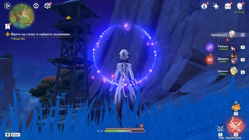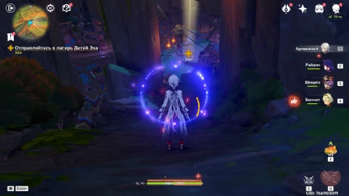 Переместившись к входу в поселение Детей Эха, спуститесь вниз и поговорите с Качиной и Шелонен. Далее вам предстоит сразиться с монстрами, при этом к вашей группе присоединится Шилонен. Напомним, что она является отличным саппортом, способным срезать сопротивления врагов (Е-шка) и лечить активного персонажа (ульта).