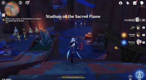 Отметим, что если вы вышли из игры, то для повторного начала этого квеста необходимо переместиться к телепорту к востоку от Стадиона Священного пламени, а затем подойти к специальному постаменту возле входа на арену и нажать на кнопку «Вступить в бой».