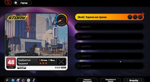 Игра порекомендует взять огненных и/или физических персонажей, так как все враги будут уязвимы к соответствующим стихиям, однако вы можете добавить любых прокаченных героев (за исключением Льда). Впрочем, мы просто использовали пробных Бернис и Пайпер.