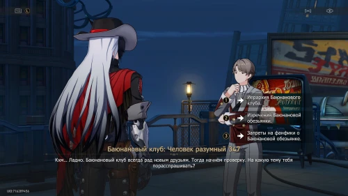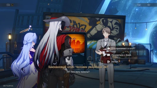 Двигайтесь на юго-восток к квестовому маркеру и подойдите к двум NPC. Один из них будет Человеком разумным 347. Послушайте диалог между персонажами. Когда поклонницу прогонят, подойдите к вышибале и поговорите с ним. Чтобы пройти в клуб, вам необходимо будет сдать экзамен. Вы можете выбрать одну из трех тем: можете указать любую, так как вы все равно провалитесь.