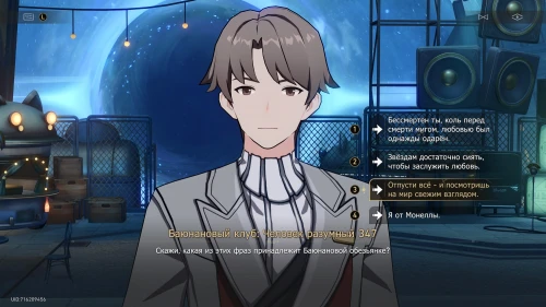 Итак, вам предстоит ответить на 3 вопроса, причем вы можете пропустить один вопрос, если скажете, что пришли от Монеллы. Впрочем, даже если вы ошибетесь, то игра позволит ответить повторно. Далее мы укажем все верные варианты (они подчеркнуты золотым цветом в игре):