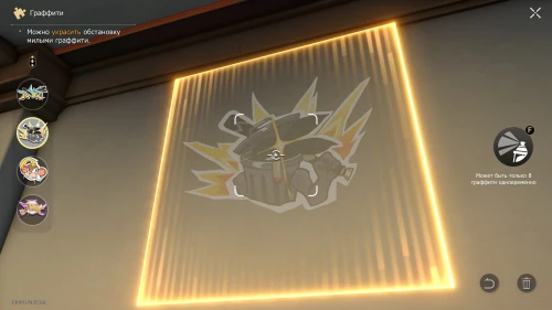 Сделайте несколько шагов от стены и кликните по кнопке в правой нижней части экрана, чтобы взяться за нанесение граффити. Вы можете выбрать один из четырех рисунков. Они повлияют на полученную оценки и реакцию наставника, однако концовка квеста и ваши награды не изменятся.