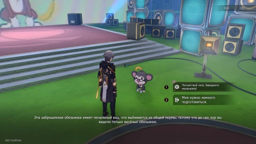 Когда Март 7 покинет вашу группу, бегите за опечаленной обезьянкой, которую вы ранее купили. Она приведет вас прямиком к Раппе, которая будет спорить с продавцом игрушек. Затем появится бананаставник. После разговора продолжайте бежать за обезьяной, которая приведет вас к проектору. Возле него проводится урок по маркетингу.